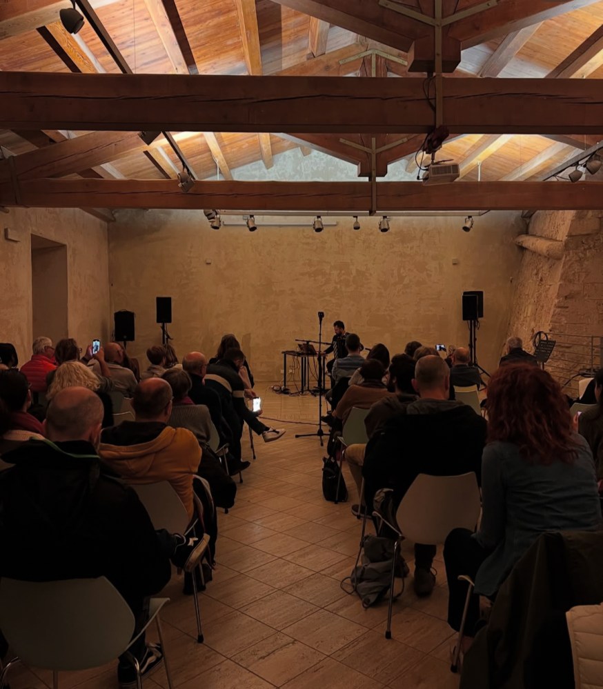 Si è conclusa sabato scorso a Cagliari la prima parte della rassegna Digressioni ospitata al Centro comunale d’arte Il Ghetto nella Sala delle Mura. Il 15 marzo il duo composto da Emiliano Amadori e Luca Piovesan ha presentato un programma intitolato Ouverture augmentée articolato in tre fasi: la prima monografica con tre capolavori per contrabbasso solo di Stefano Scodanibbio, abbiamo ascoltato Amadori suonare E/Statico (1980), Due pezzi brillanti (1985), Geografia amorosa (1994); nella seconda parte il duo si è formato per una prima assoluta del compositore e curatore della rassegna Alessandro Milia, un pezzo sperimentale, frutto di due anni di lavoro insieme a Amadori e Piovesan, intitolato Sulki | quattro momenti del vento (2023-2025) concepito in quatto grandi parti, L’accelerazione del vento, Frangenti mangiabarche, In sospeso, Aria disegna acque, costituirà un EP che i tre artisti desiderano pubblicare. Nella terza parte del concerto Piovesan da solista ha suonato in prima assoluta una sua lunga composizione Aquae sonantes (2024) per poliarmonica (fisarmonica aumentata con pedaliera ed elettronica). Lo strumento e il repertorio suonato da Piovesan sono frutto di una ricerca in PhD alla VUB (Vrije Universiteit Brussel) e al KCB (Koninklijk Conservatorium Brussel), che è stata presentata il 13 marzo a Cagliari al Conservatorio grazie all’interesse degli allievi e dei loro maestri Michele Sanna (composizione), Sandro Mungianu (elettronica) e Gabriele Marangoni (fisarmonica), argomento poi ripreso anche il 15 in un’intervista-conferenza Milia-Piovesan alla Sala delle Mura prima del concerto.