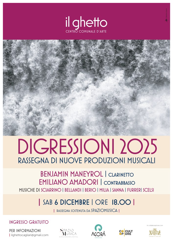 Il 6 dicembre alle 18h! Serata conclusiva della prima edizione di Digressioni, rassegna di nuove produzioni musicali ospitata nelle sale espositive del Ghetto in Castello a Cagliari e sostenuta da Spaziomusica.